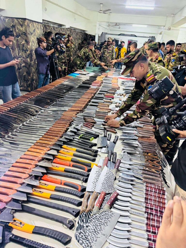 রাজধানীতে সামুরাই, চাপাতি ও বিভিন্ন ধারালো অস্ত্রের বিক্রয়কেন্দ্র ও গুদামের সন্ধান পেয়েছে সেনাবাহিনী। সেখান থেকে বিপুল পরিমাণ দেশীয় ধারালো অস্ত্র উদ্ধার করা হয়েছে।